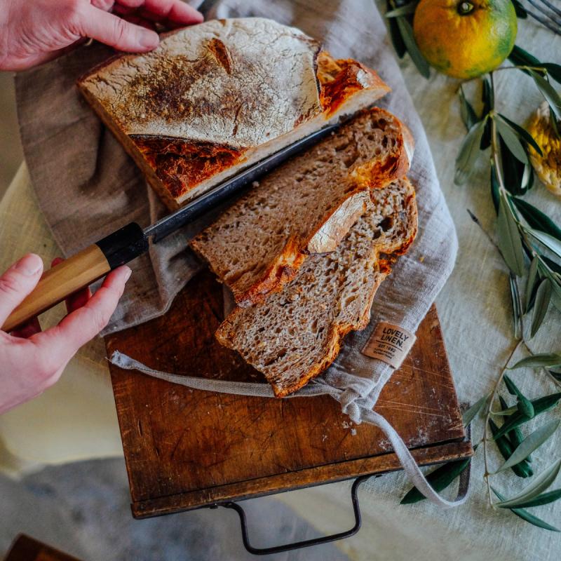 Linne är ett slitstarkt och andningsbart naturmaterial som hjälper till att bevara brödets kvalitet. Till skillnad från täta plastpåsar låter linnet brödet andas, vilket bidrar till en mer skonsam och naturlig förvaring.