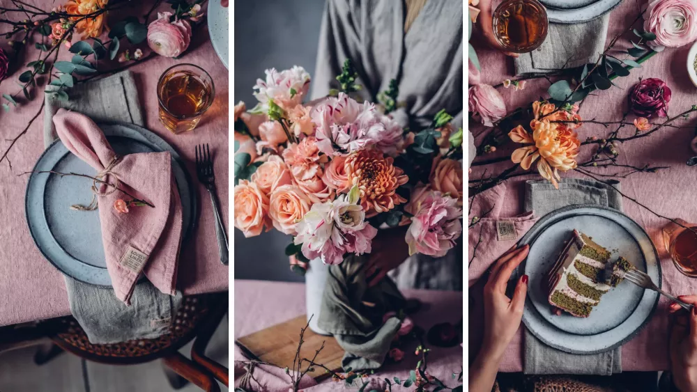 Linneservetter och blommor är enkla detaljer som snabbt höjer stämmningen.