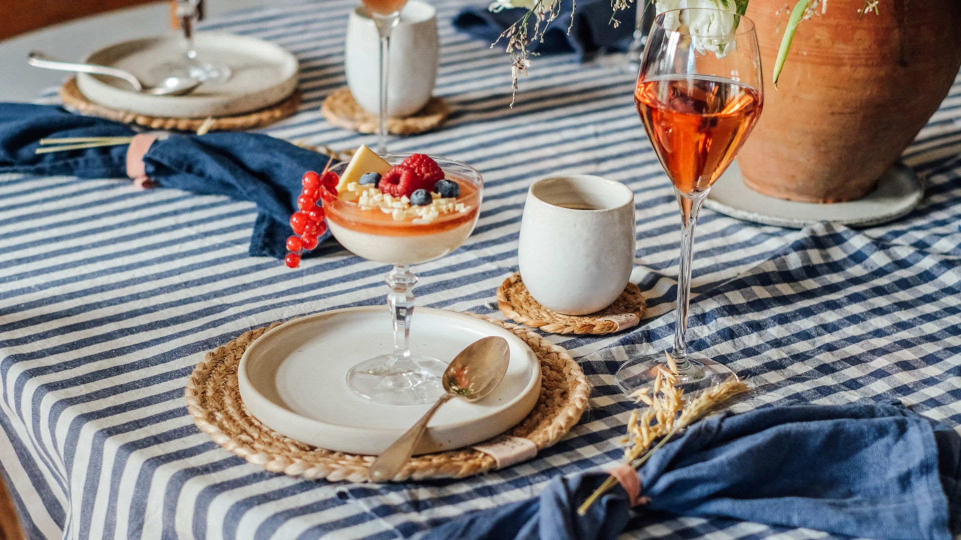 Den vit-blå randen skapar rytm på bordet och ger dukningen liv.