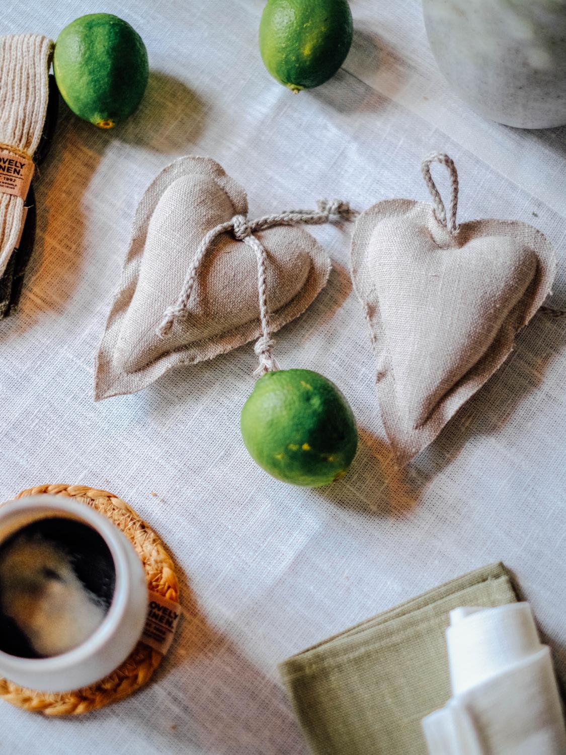 Den naturliga linnestrukturen ger ett varmt, tidlöst uttryck och gör hjärtat lätt att kombinera med andra textilier och material i hemmet.